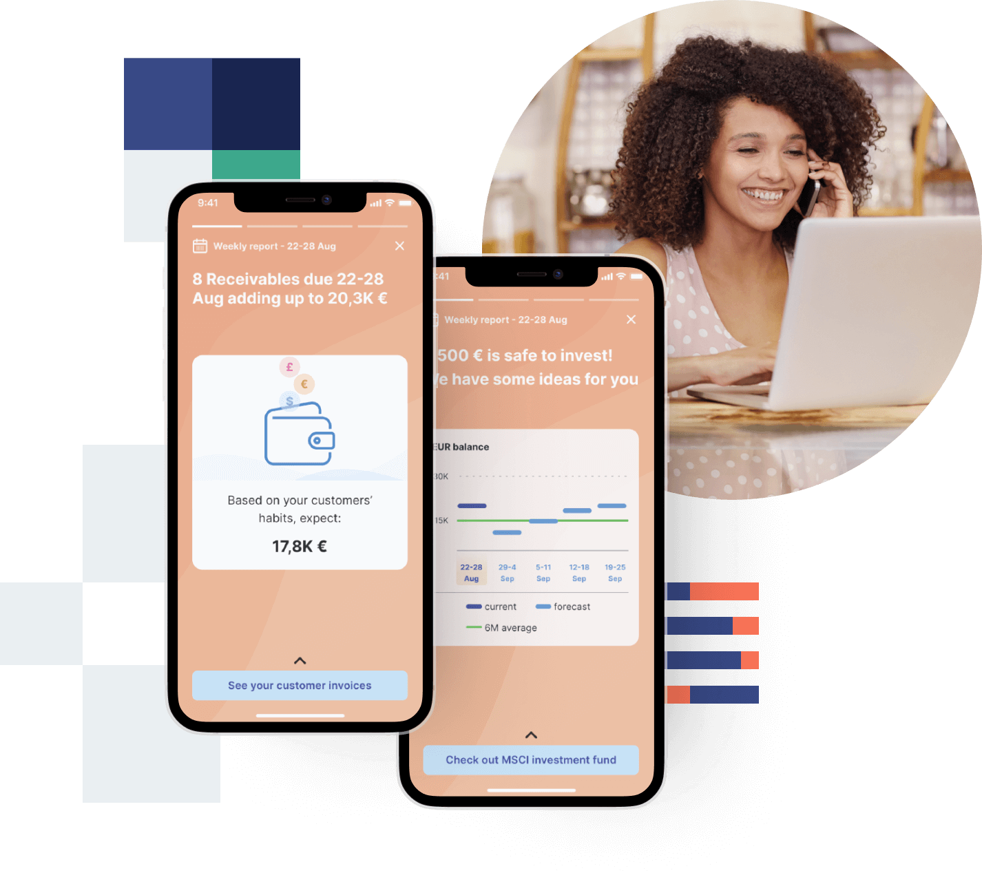 Calculate and show your small- and micro business customers the most relevant insights about their finances on daily, weekly and monthly basis.